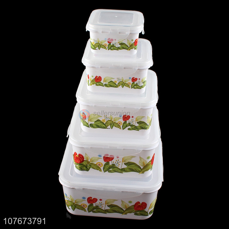 Latest 5 Pieces Plastic Square Preservation Box Set Fashion Kitchen Containers