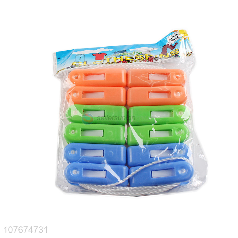 Hot-selling spring clothespins socks clip plastic clips with rope 12pcs