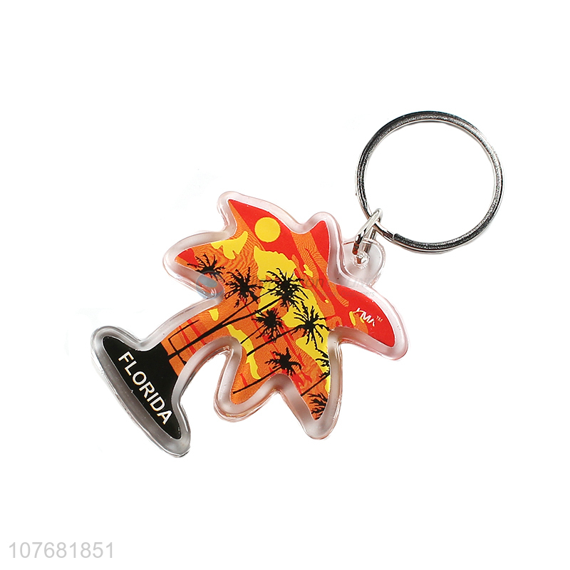 Low price coconut palm key chain acrylic keychain for souvenir