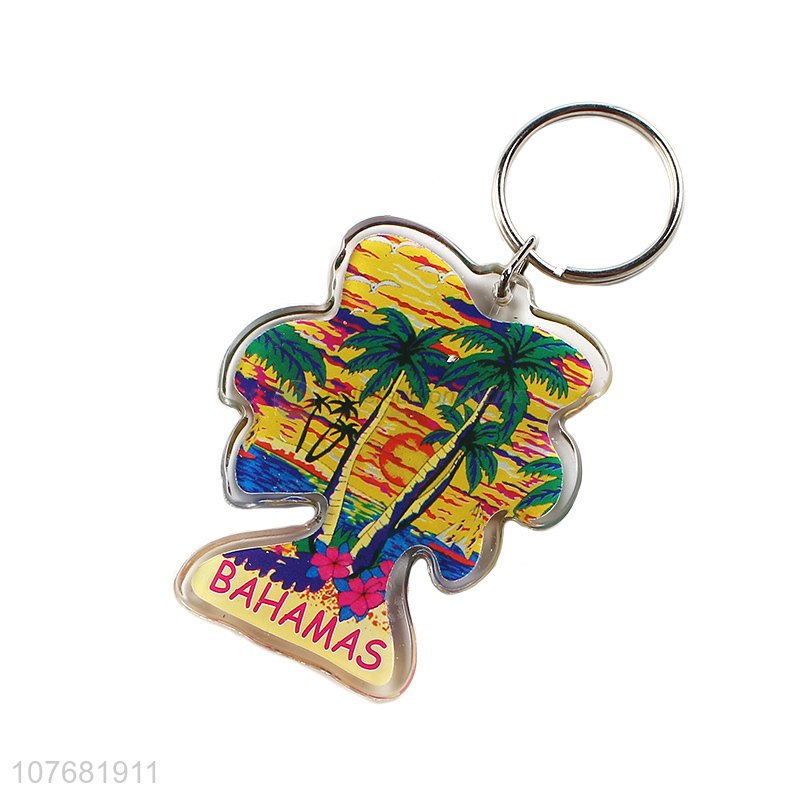 Good quality coconut palm key chain acrylic keychain key ring