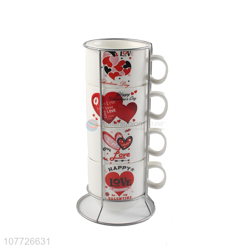 Most popular colorful heart stackable ceramic mug set ceramic water cup set