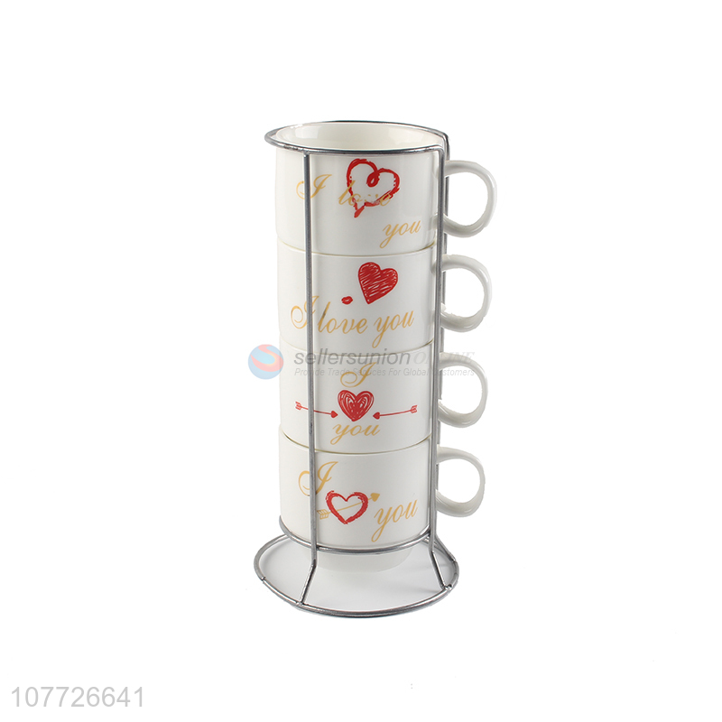 New design glaze ceramic cup set stackable heart ceramic milk cup set