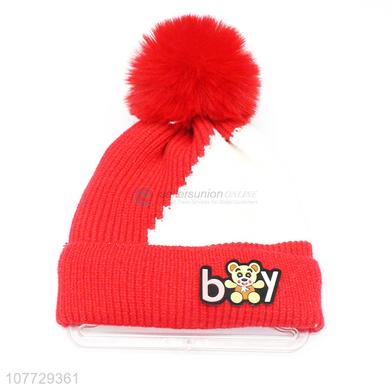 Factory price kids winter pompom hat toddler boys beanie cap
