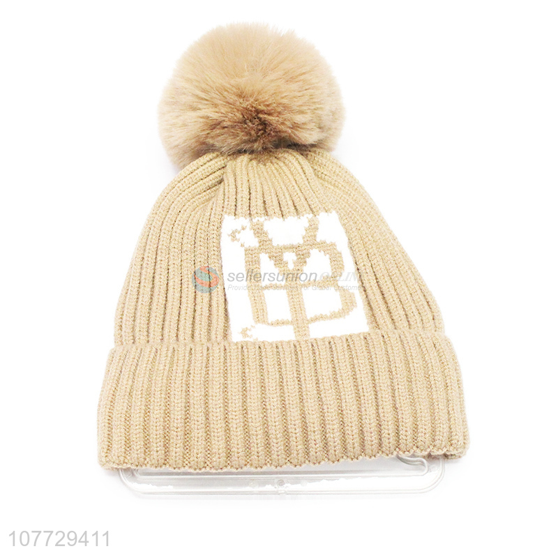 Promotional kids winter hat boys jacquard pompom beanie hat