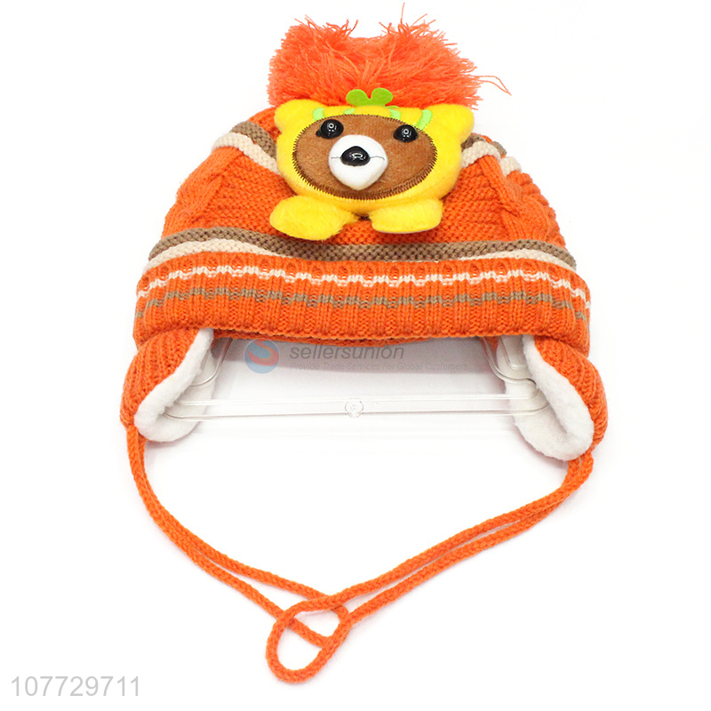 Low price cartoon animal kids beanies children winter hat with earmuffs