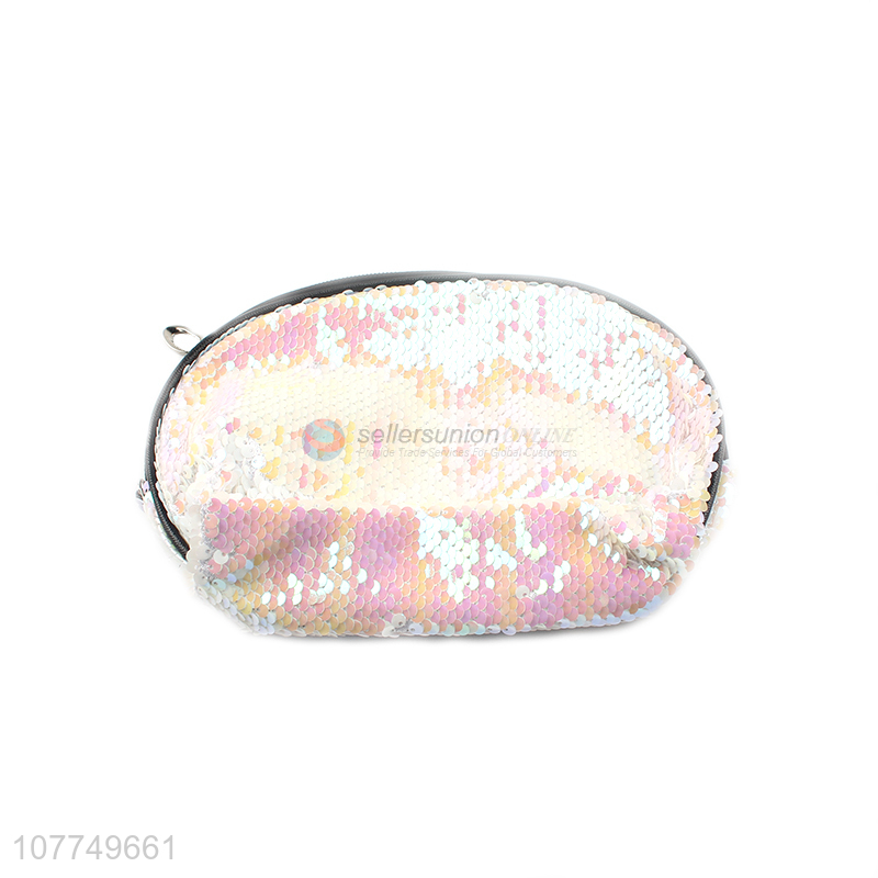 Hot sale lady white sequin travel cosmetic bag