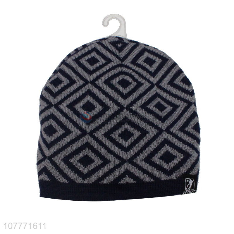 Winter plush thick embroidered pattern knitted woolen hat