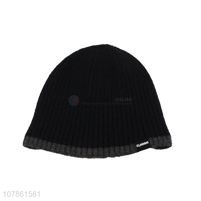 Best selling black winter soft acrylic knitted hat wholesale