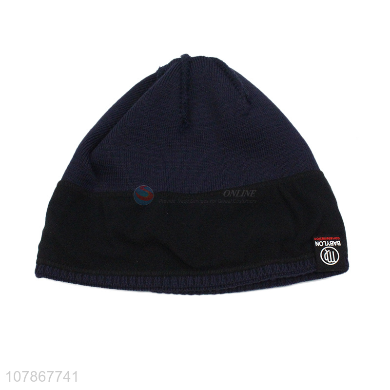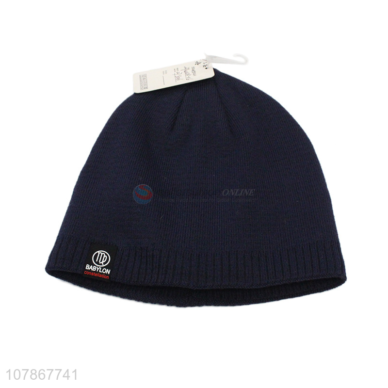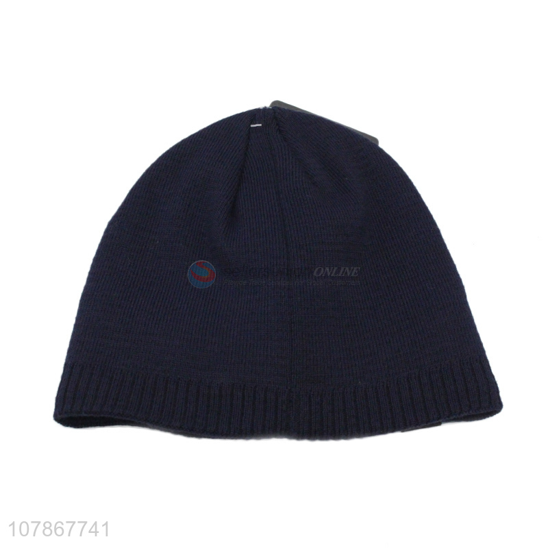 Factory direct sale blue plus velvet knitted hat melon leather hat for men
