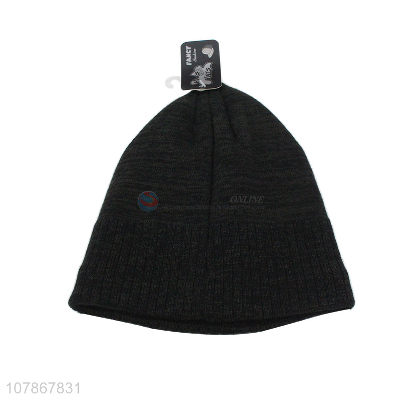 Simple design black knitted woolen hat winter plus cashmere sports cap