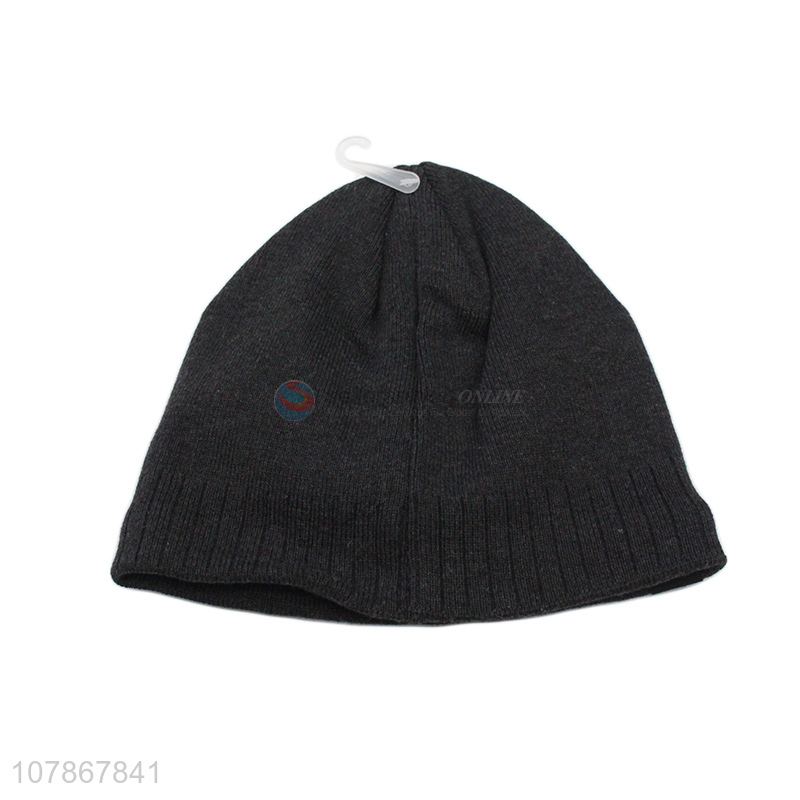 High quality black hooded outdoor sports windproof knitted hat for men