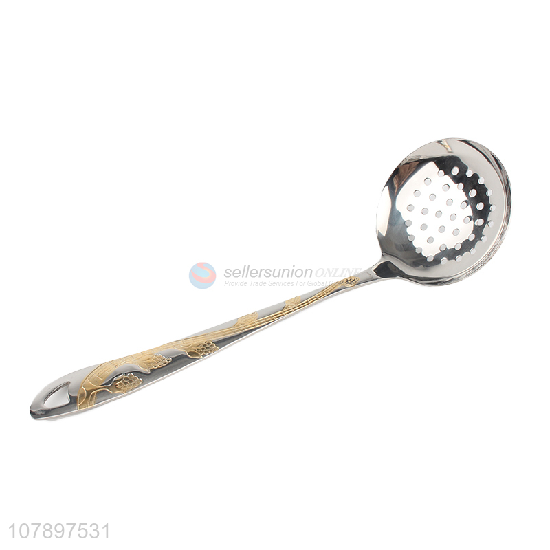 Low price wholesale silver stainless steel carving long handle colander