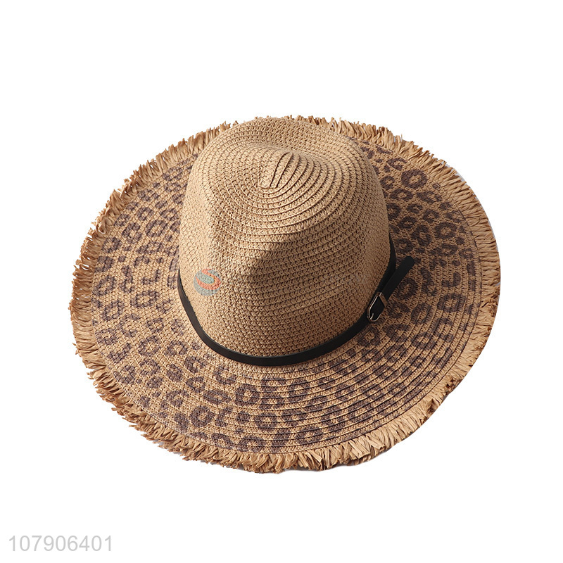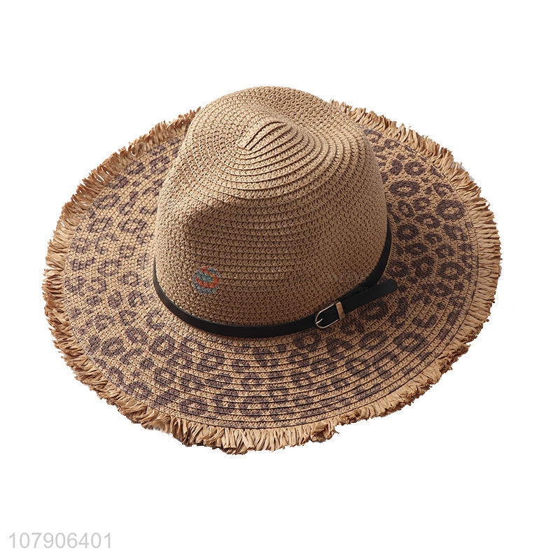 New arrival leopard print wide brim paper straw hat beach panama hat