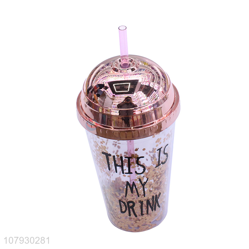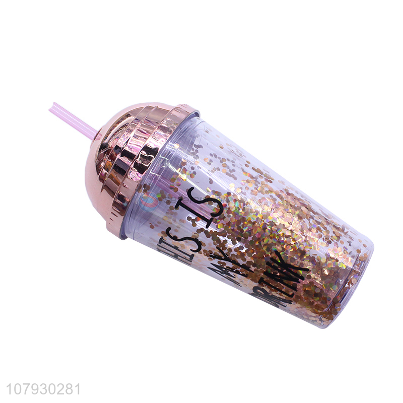 China imports sequined water cup double-walled straw cup with straw