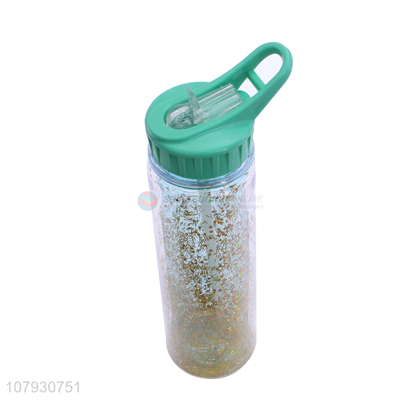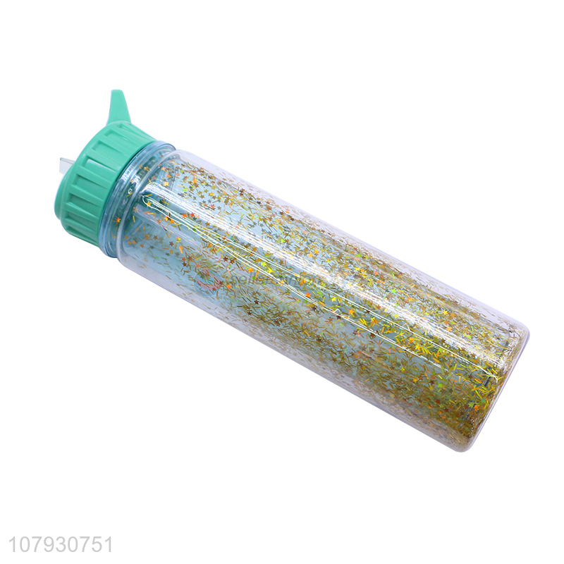 New arrival creative double-walled sequined plastic water bottle with straw