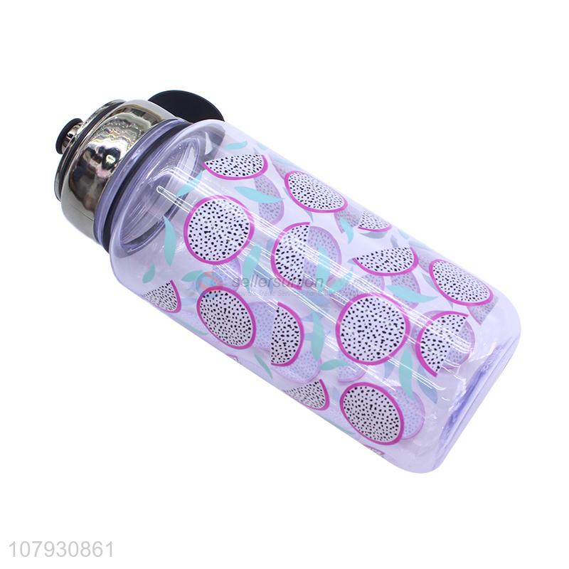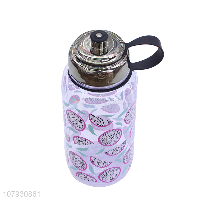 Good quality pitaya pattern plastic water bottle custom drinking bottle with handle