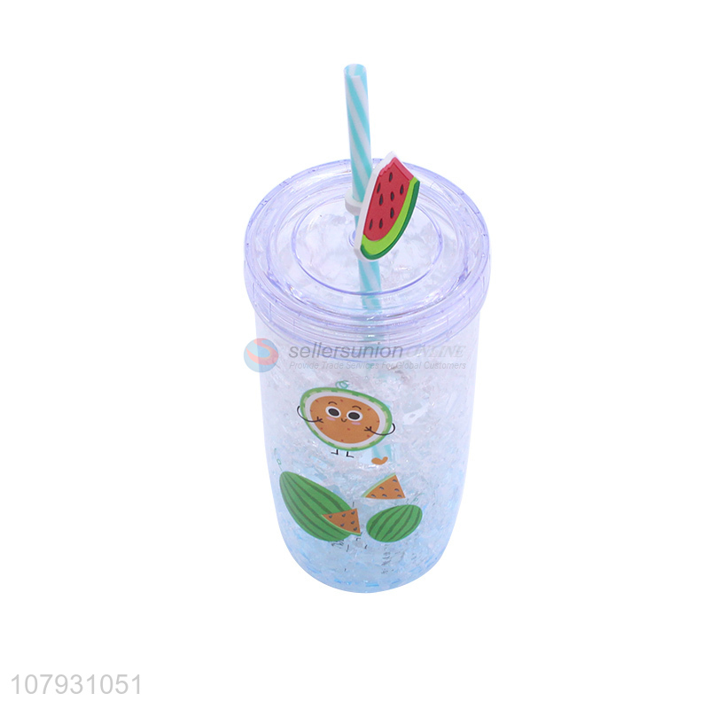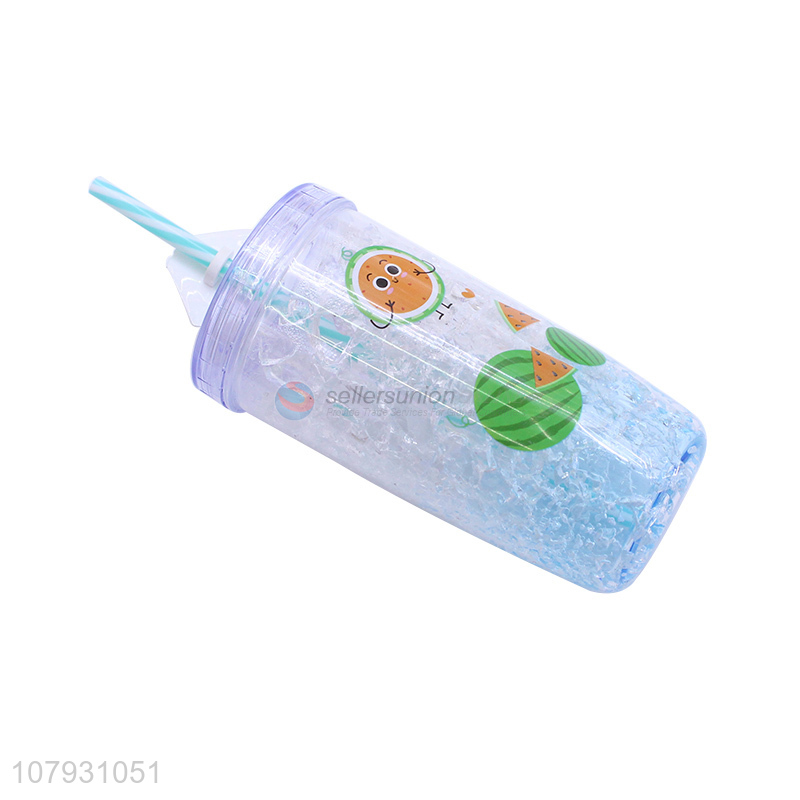 Recent product cute mugs ice gel plastic cooling cup milk cup with straw