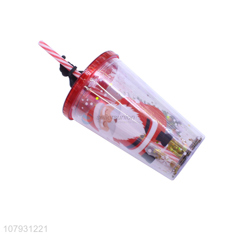 China manufacturer plastic straw cup Christmas drinking cup with straw