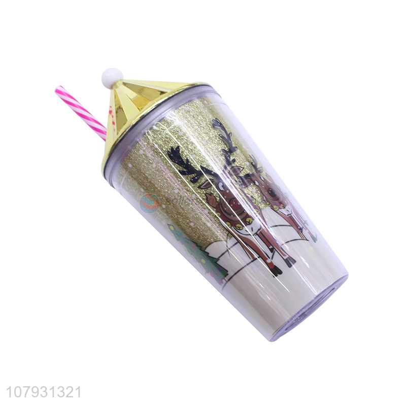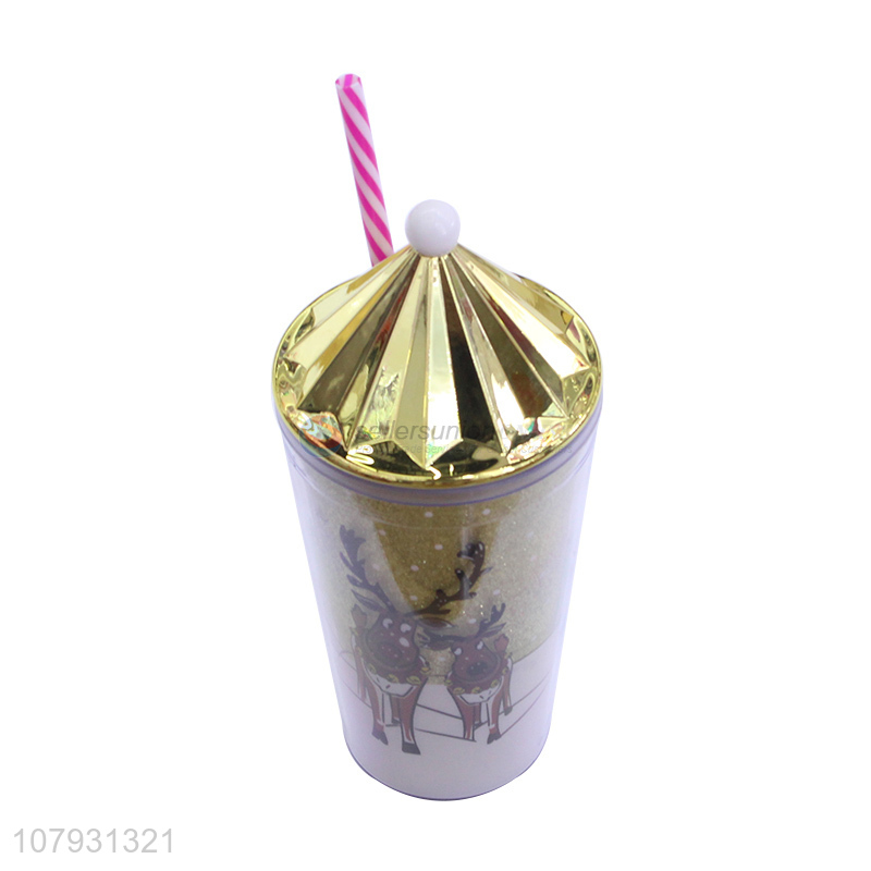Yiwu market lovely Christmas straw cups Christmas tumbler with straw