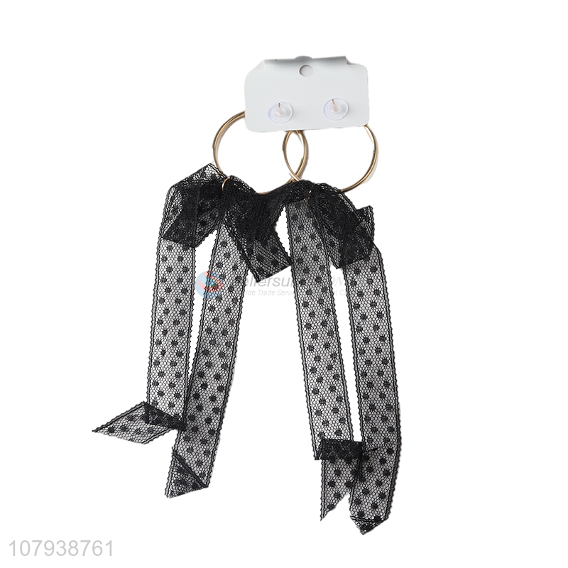 Latest products black long ribbon earrings women jewelry for sale