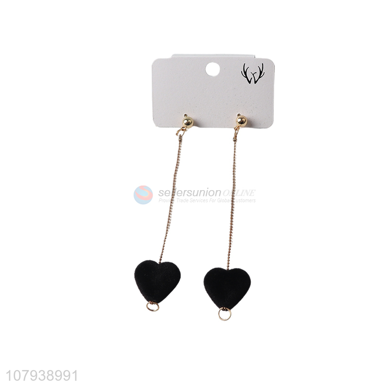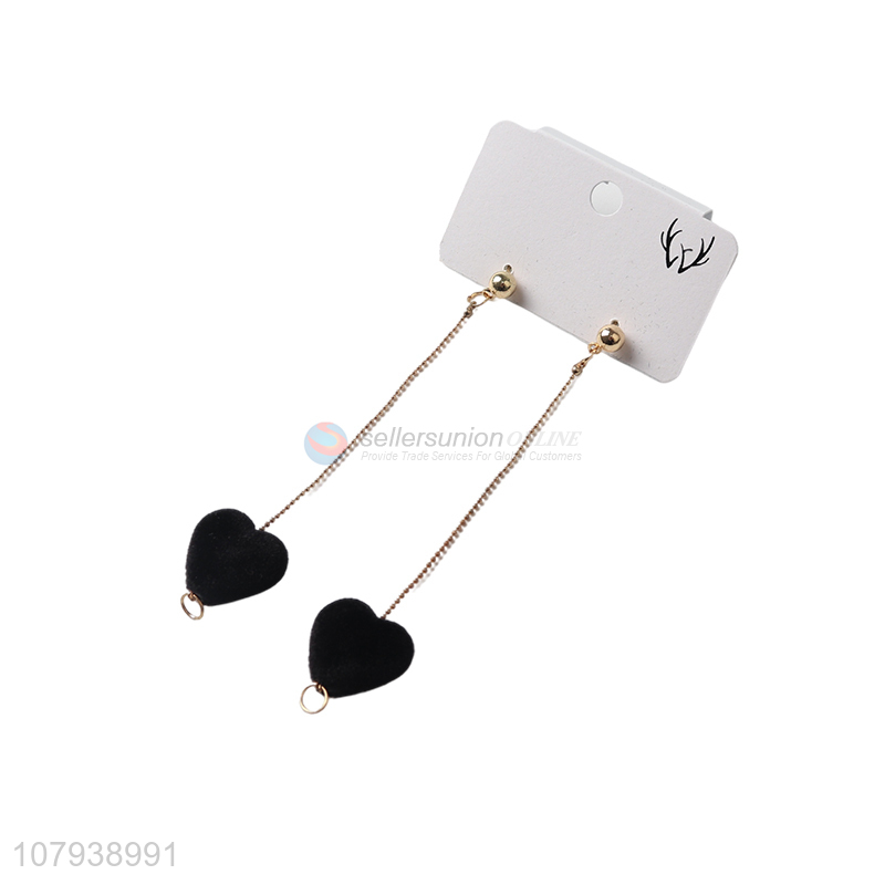 China wholesale women metal stud earrings with heart shape pendant