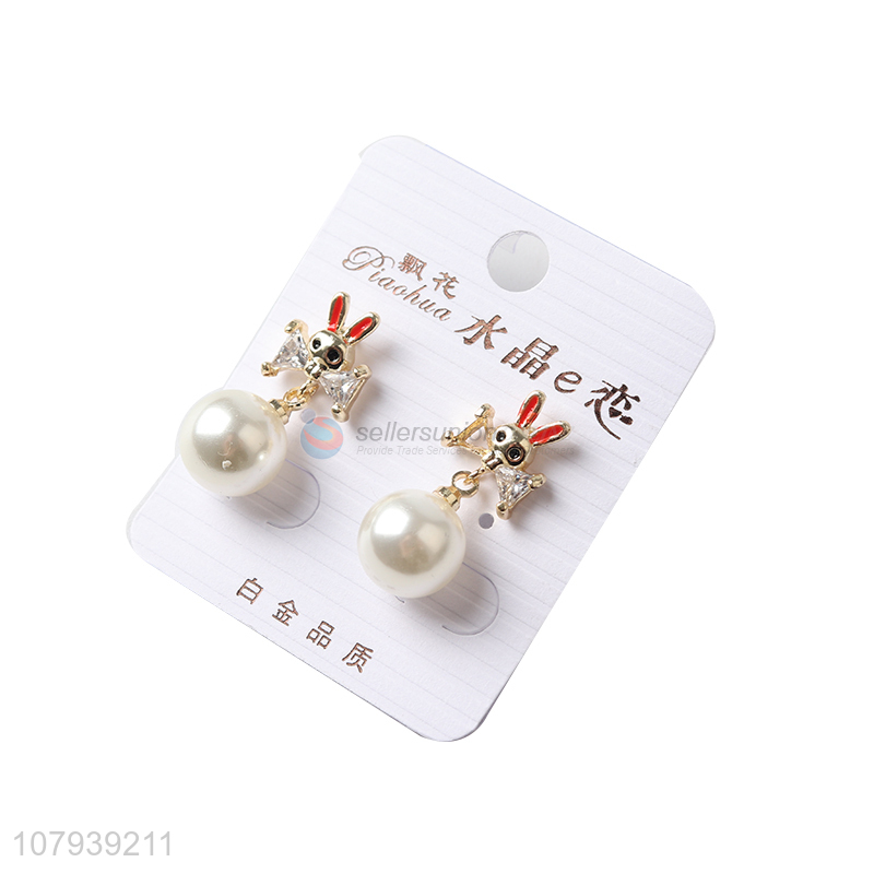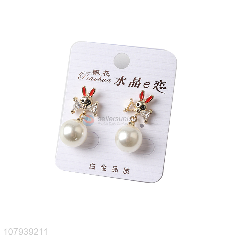 China factory fashion lady metal stud earrings with pearl pendant