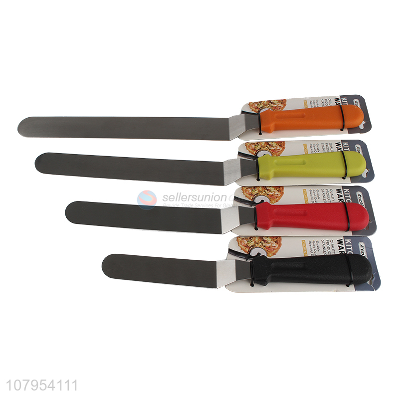 China manufacturer plastic handle stainless steel curved cake cream spatula