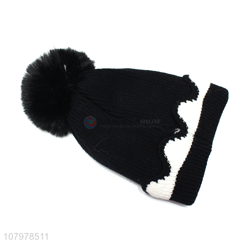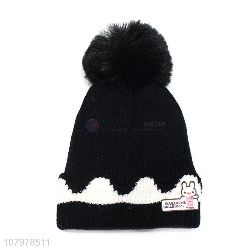 Hot sale kids pom pom hat winter knitted beanie cap with fleece lining