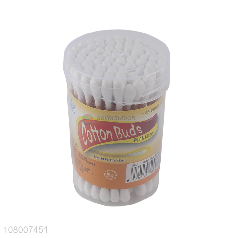 Popular products eco-friendly wooden cotton swabs with round plastic box