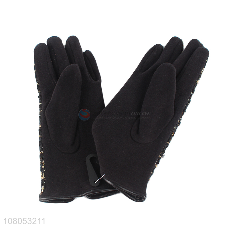 Yiwu direct sale black fashion gloves ladies outdoor gloves
