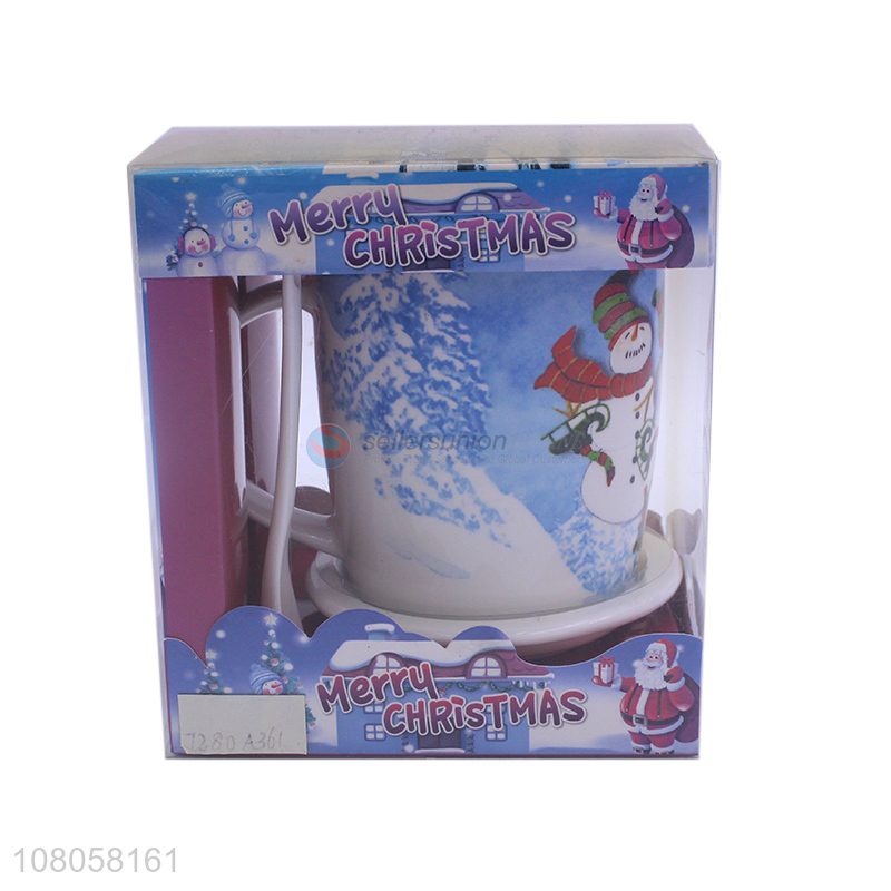 Fashion Christmas Printing Ceramic Cup With Spoon