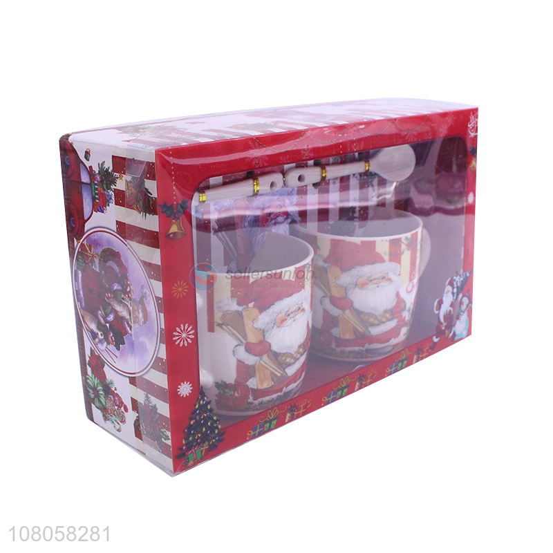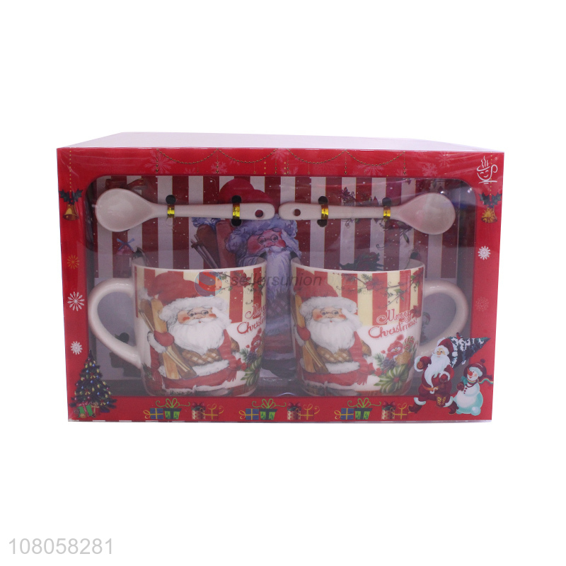 High Quality 2 Ceramic Cups With Spoon Set