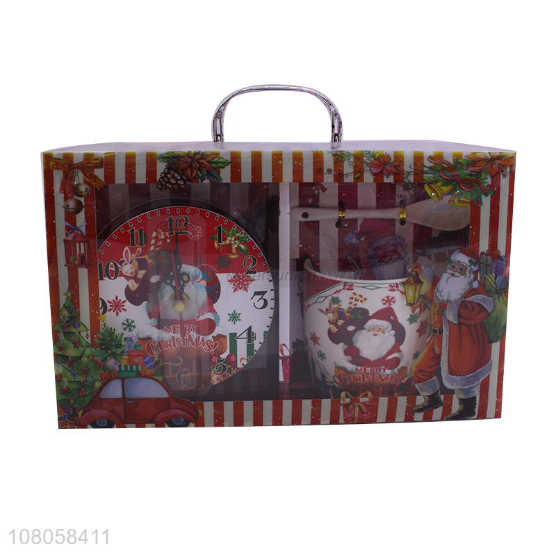 Fashion Ceramic Cup With Clock And Spoon Gift Set For Christmas