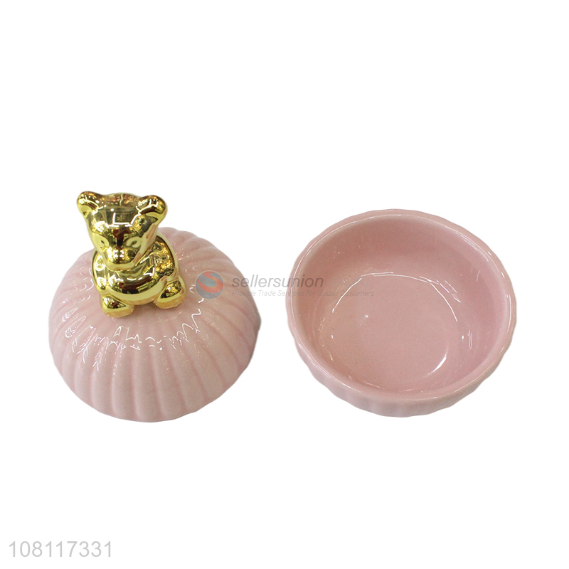Wholesale cute ceramic jewelry box animal lid trinket cases