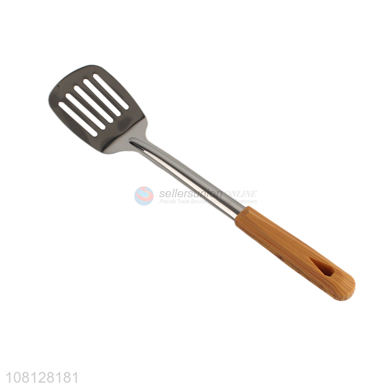 Good quality stainless steel slotted spatula with wooden handle