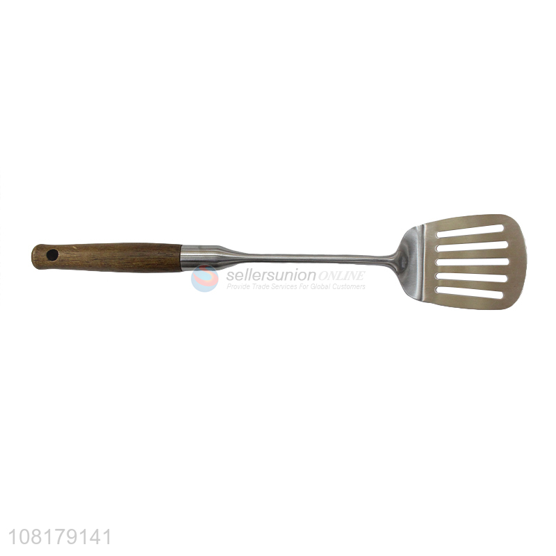 Wholesale stainless steel slotted spatula with wooden handle