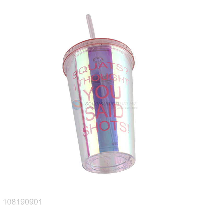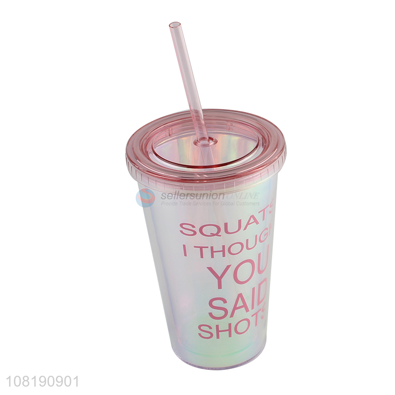 Low price insulated tumbler with lid and straw double wall plastic water cup