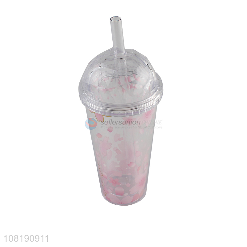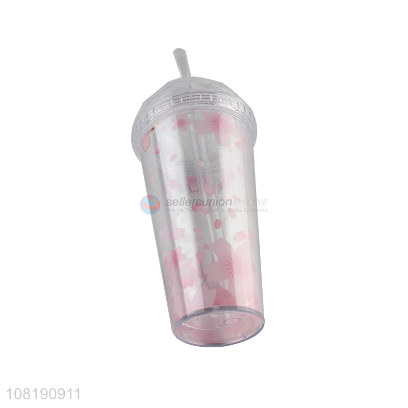 Good quality plastic water cup with lid and straw double-wall sakura tumblers