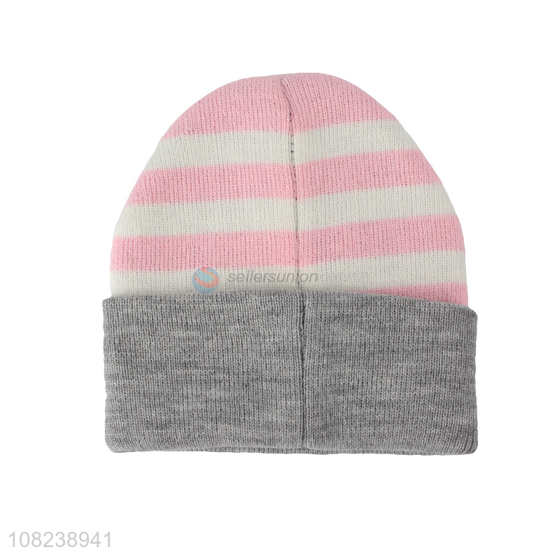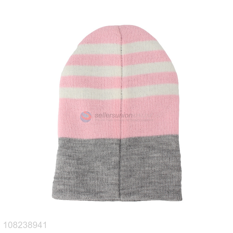 Good sale women girls striped winter hat knitted beanies skull cap