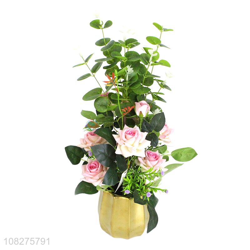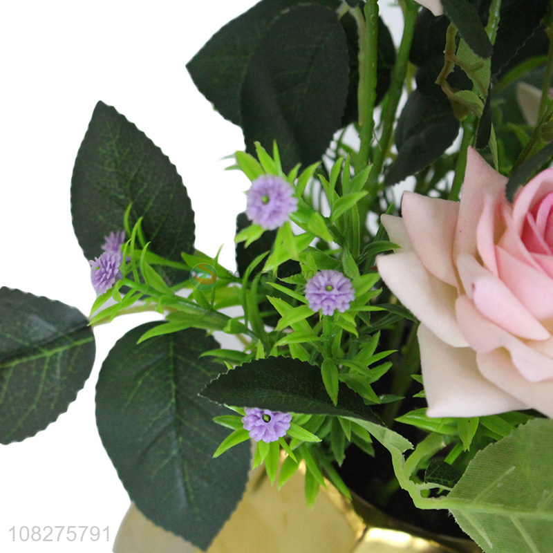 Wholesale decorative realistic rose artificial potted flowers fake flowers