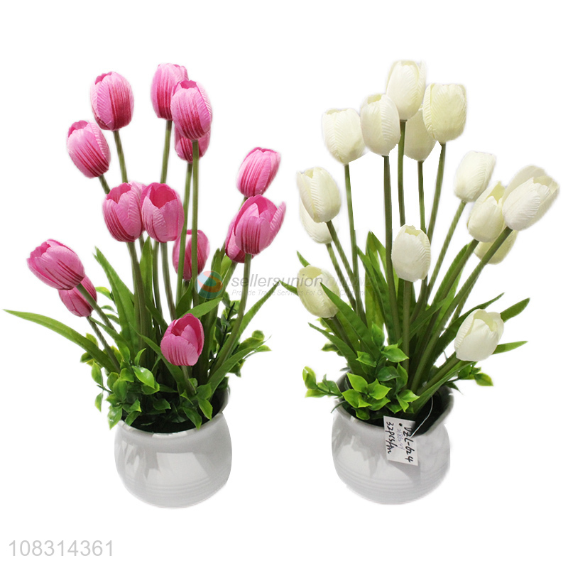 New design multicolor plastic fake flower ceramic pot bonsai