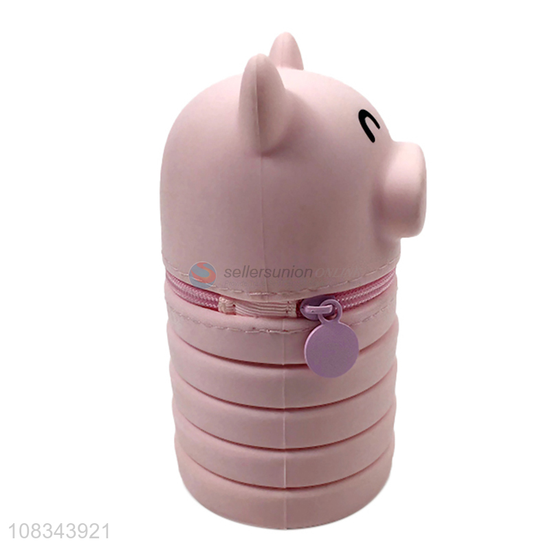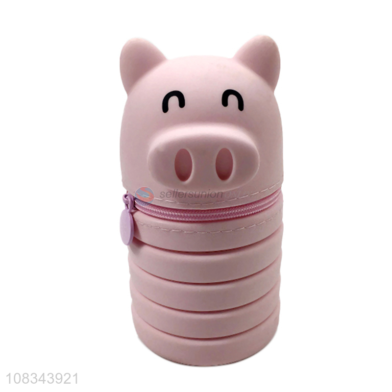 Cute Pig Design Telescopic Silicone Pen Bag Pencil Case