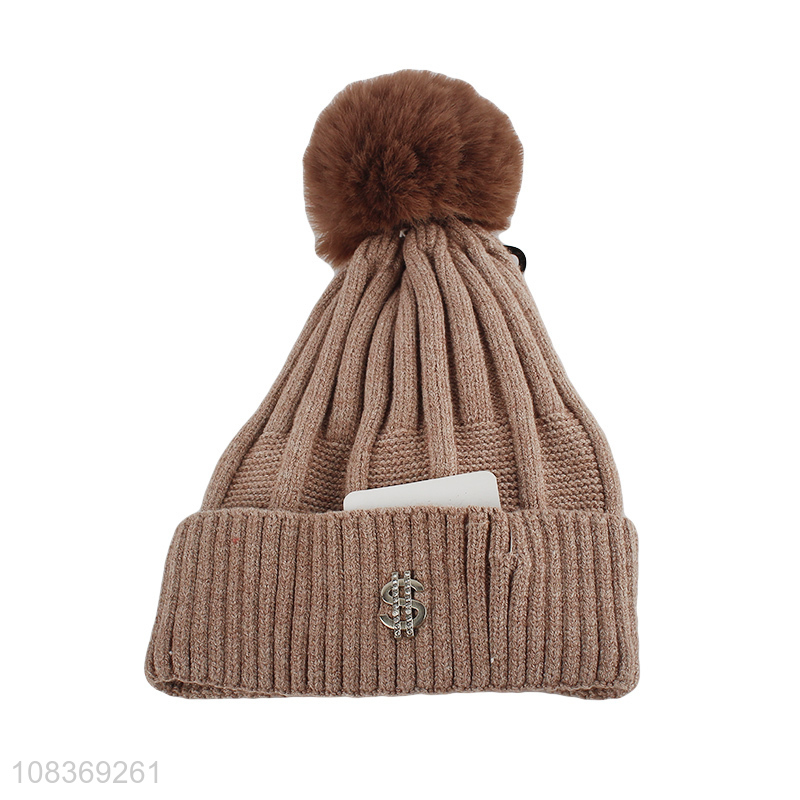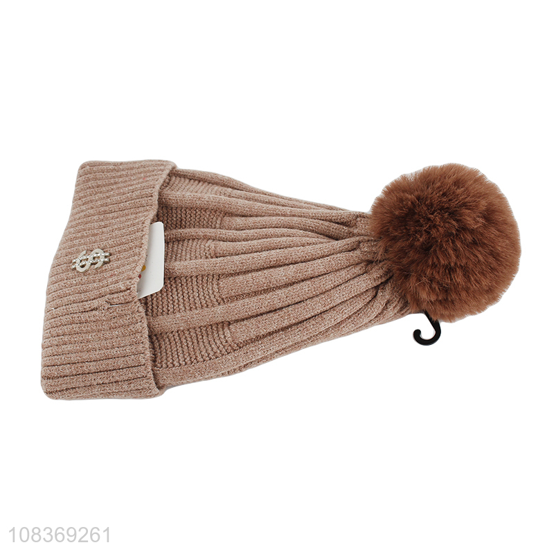 Wholesale from china winter fashion knitted hats with fuzz ball