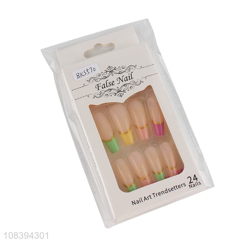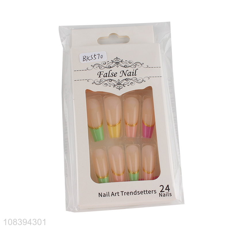 Bottom price full cover ballerina fake nails gold foil false nails