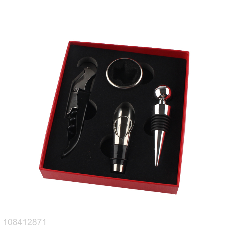 Hot sale 4pcs/set upgraded red wine opener tool kit corkscrew gift set
