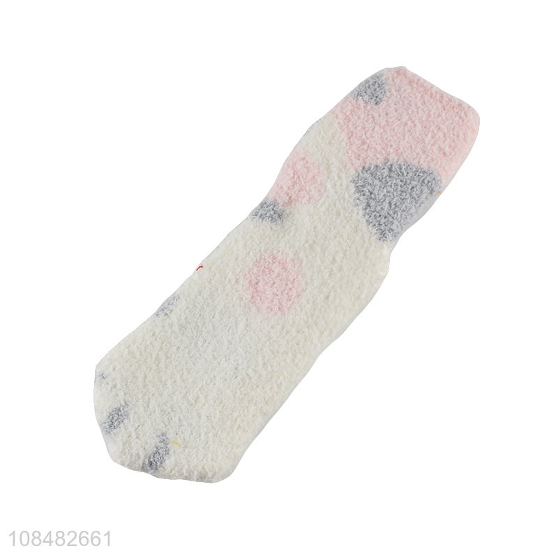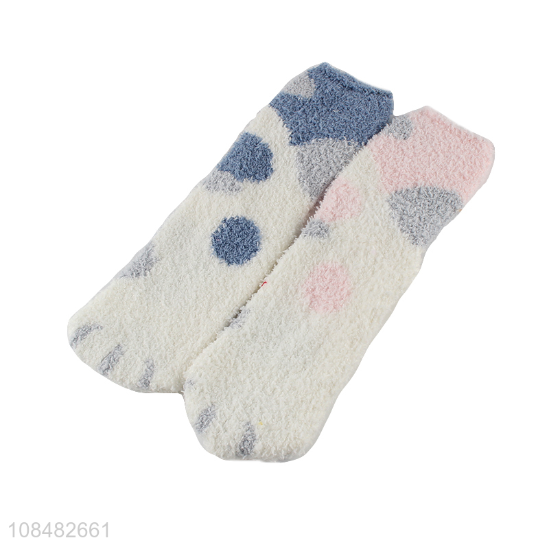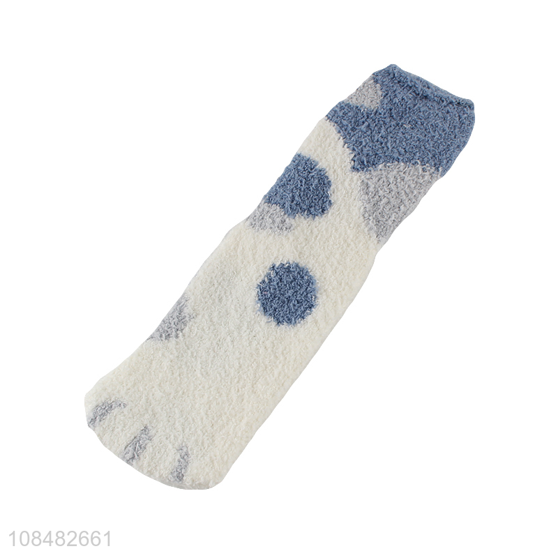 Hot selling cat paw printed coral fleece crew socks for women girls