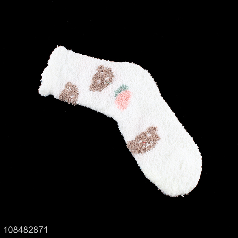 Wholesale fashionable thick fluffy warm coral fleece sleeping socks