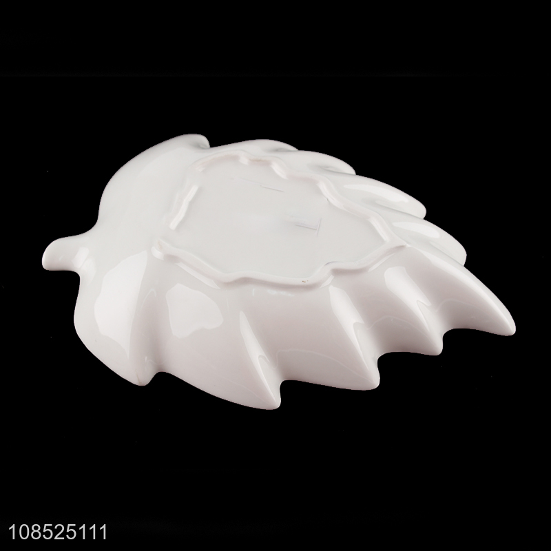 Hot products white leaves shape plate ceramic dishes for sale