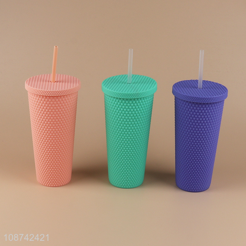 Good quality reusable double-walled plastic tumbler with lid and straw
