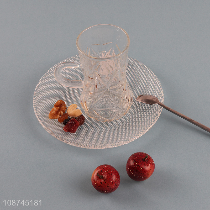 New product clear embossed glass tea cup coffee mug drinking glass